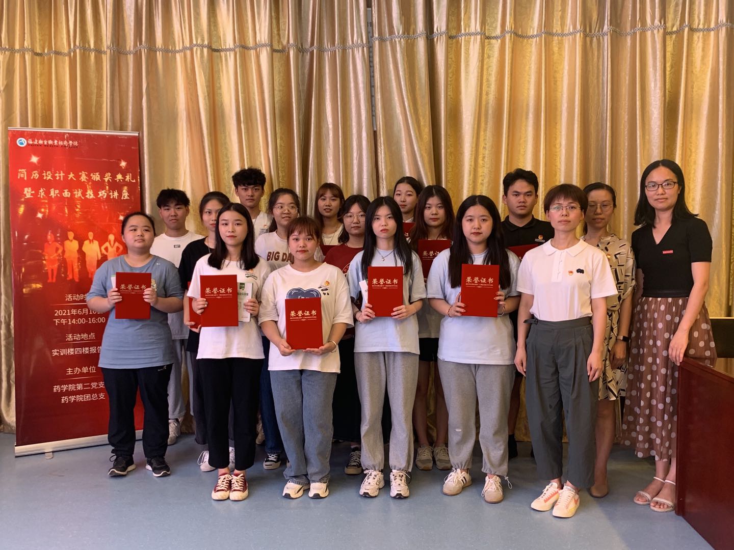 2021年6月10日,藥學(xué)院第二黨支部黨員、高濟(jì)福建宜又佳醫(yī)藥有限責(zé)任公司代表及藥學(xué)院各個專業(yè)的180位同學(xué)參加了于實訓(xùn)樓四樓會議室舉辦的簡歷設(shè)計大賽頒獎典禮暨求職面試技巧講座。本次簡歷設(shè)計大賽共計收到學(xué)生簡歷作品337份,經(jīng)過專家組的評選,最終確定一等獎、二等獎、三等獎獲得者共27人。
