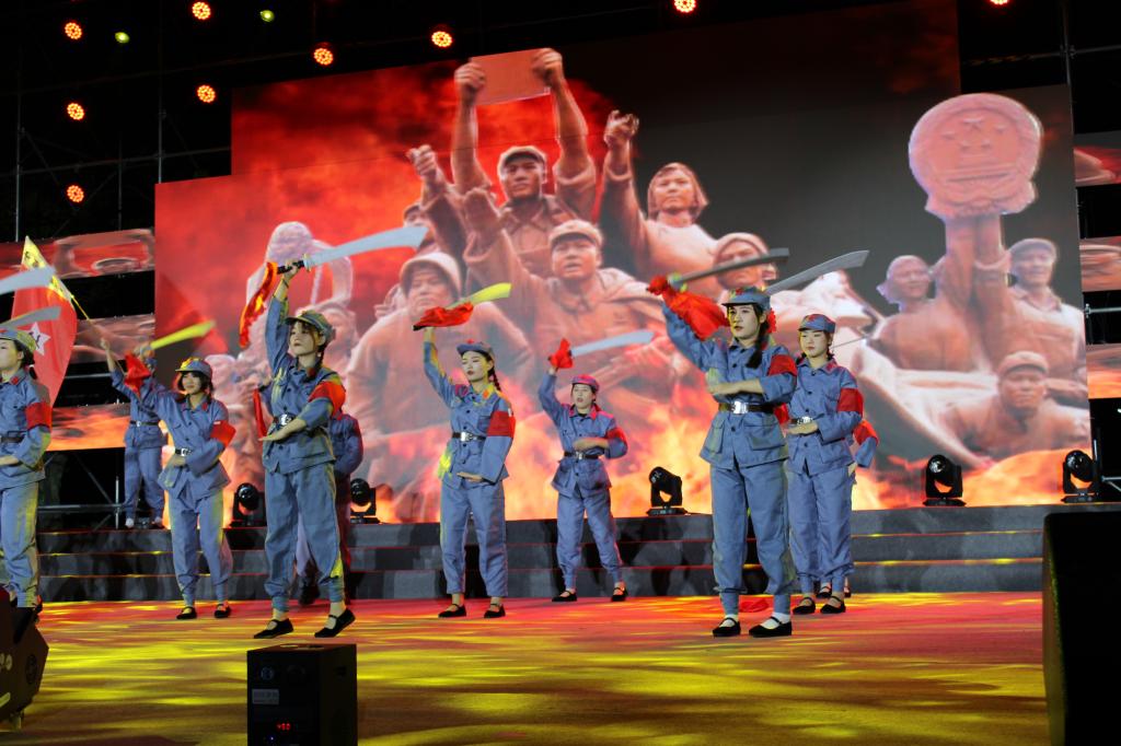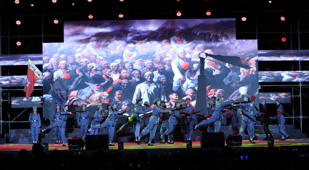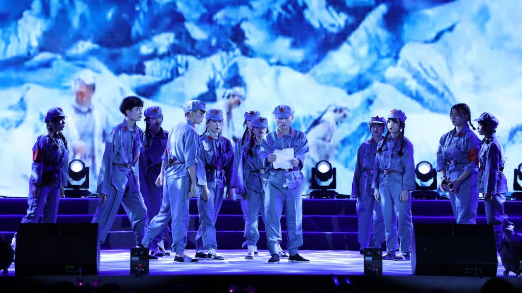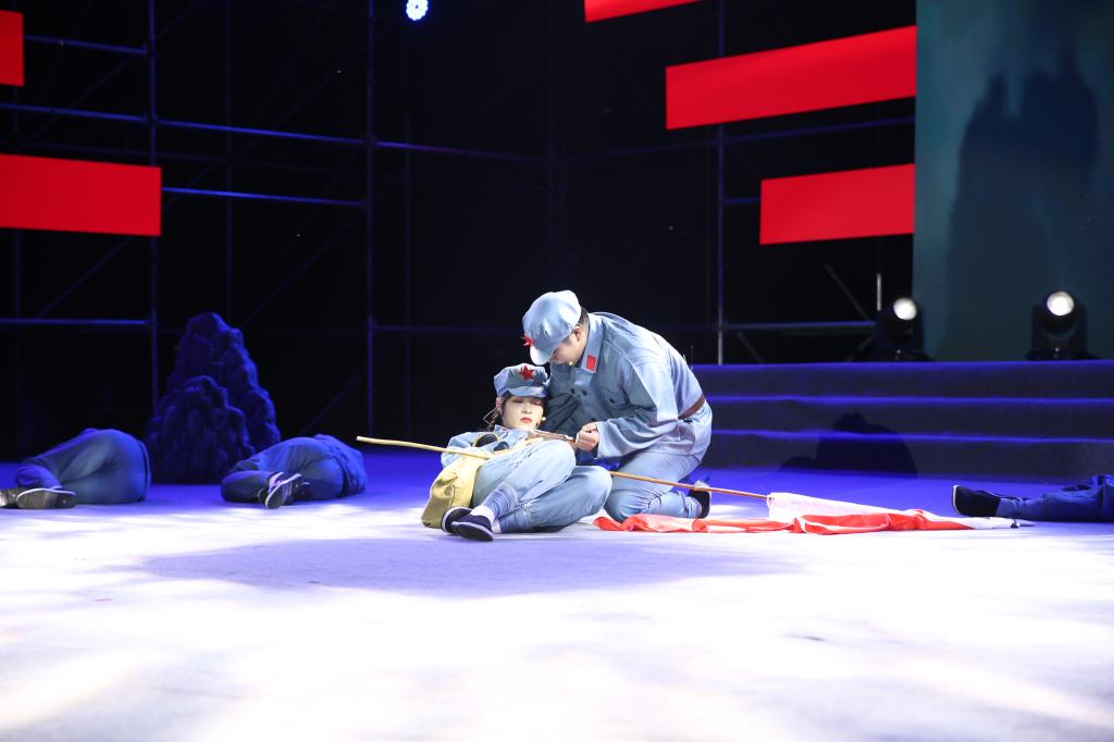皚皚皓雪,巍巍井岡。主題情景表演《星星之火可以燎原》講述了井岡山“凝心鑄魂”和中藥材“凝血救命”的感人事跡。