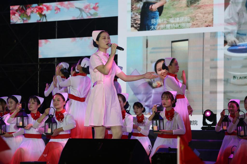 歌伴舞《提燈女神》帶領我們回顧了福建支援湖北武漢醫療隊員在金銀潭醫院夜間巡房的情景。
