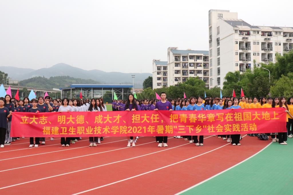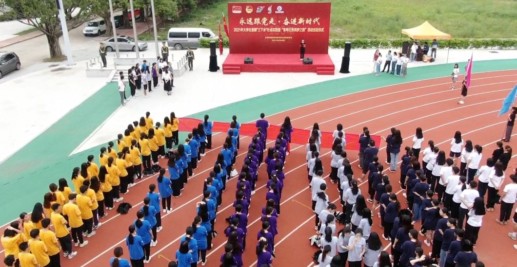 6月28日上午,七一前夕,我校“永遠跟黨走 奮進新時代”2021年暑期“三下鄉”社會實踐暨“青年紅色筑夢之旅”活動出征儀式在田徑運動場舉行。
