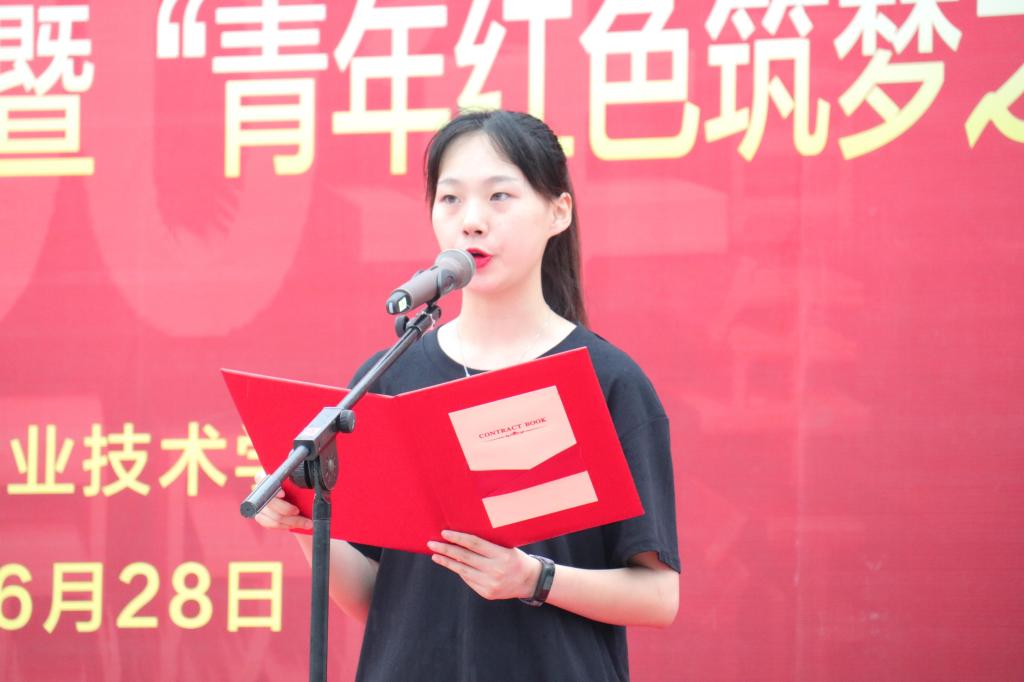 黃杏怡帶領全體實踐志愿者們宣誓,立志用自己所學的專業知識結合科技,文化,醫療服務社會與人民,自覺地將青春融入祖國的建設之中,把個人追求同人民群眾的需要緊密結合起來。