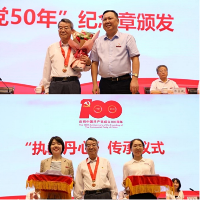6月24日下午,學校召開慶祝中國共產黨成立100周年暨“兩優一先”表彰大會,校黨委書記曾武祈為老黨員代表頒發了“光榮在黨50年”紀念章和鮮花,并舉行了新、老教師黨員“執教丹心”的傳承儀式。紀念章頒發儀式莊重而簡樸,光輝的紀念章代表著以習近平同志為核心的黨中央對老黨員教師們的關懷和溫暖,映照著老黨員教師為教育事業堅守的不變初心。