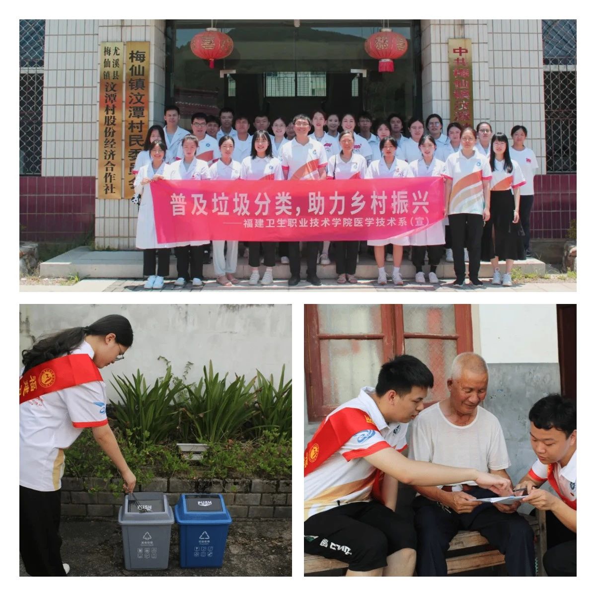 通過入村宣傳和走訪調研,實踐隊在尤溪縣梅仙鎮各村開展垃圾分類普及活動。結合簡明生動的宣傳小冊、問卷調查、現場演示等方式,實踐隊在群眾中積極推廣“記得住、易操作”的垃圾分類方法,助力美麗鄉村建設。