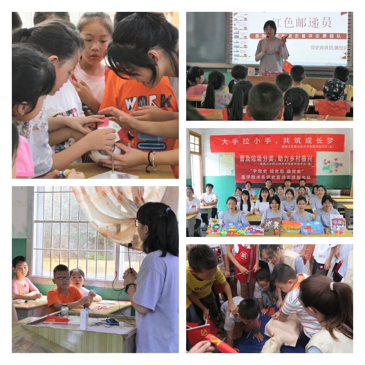 7月9日上午,實踐隊來到尤溪縣梅仙鎮梅營小學,隊員們結合當地紅色文化,為小朋友講述“紅色郵遞員——沈石義”的黨史故事;貼心為小朋友們開展防溺水安全教育,并手把手教小朋友體驗心肺復蘇過程;利用眼球模型,引導小朋友了解眼睛重要性,科普用眼知識,共同呵護好光明的未來。