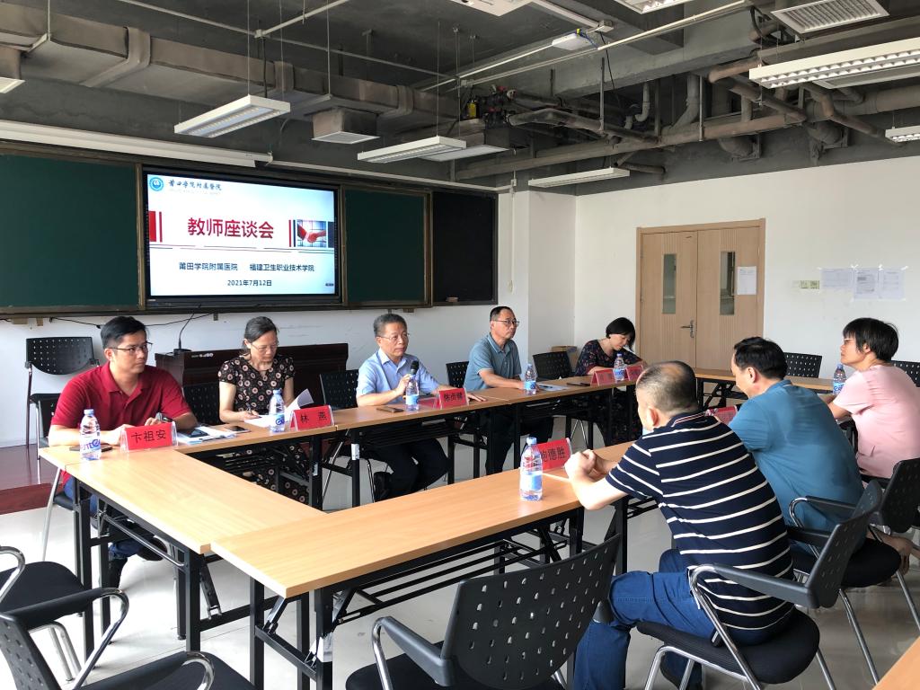 隨后,我校一行與醫(yī)院的帶教老師開展座談,通過帶教老師的反饋,了解學(xué)生在醫(yī)院學(xué)習(xí)情況及各方面表現(xiàn)。帶教老師充分肯定了我校實(shí)習(xí)生的表現(xiàn),對(duì)實(shí)踐教學(xué)方法的改進(jìn)也提出了寶貴的建議。另外,我校一行還看望了莆田涵江醫(yī)院、莆田學(xué)院附屬醫(yī)院的實(shí)習(xí)生,聽取了同學(xué)們的臨床實(shí)習(xí)感悟,并對(duì)同學(xué)們提出的問題意見做了詳細(xì)的回答和記錄。陳貞健強(qiáng)調(diào)實(shí)習(xí)期間專業(yè)知識(shí)和實(shí)際操作相結(jié)合的重要性,以及實(shí)習(xí)期間的安全問題,鼓勵(lì)同學(xué)們要踏實(shí)工作,努力提高實(shí)踐能力,增強(qiáng)職業(yè)崗位適應(yīng)性,做好職業(yè)生涯規(guī)劃,更好地滿足社會(huì)要求,盡快完成角色轉(zhuǎn)變。