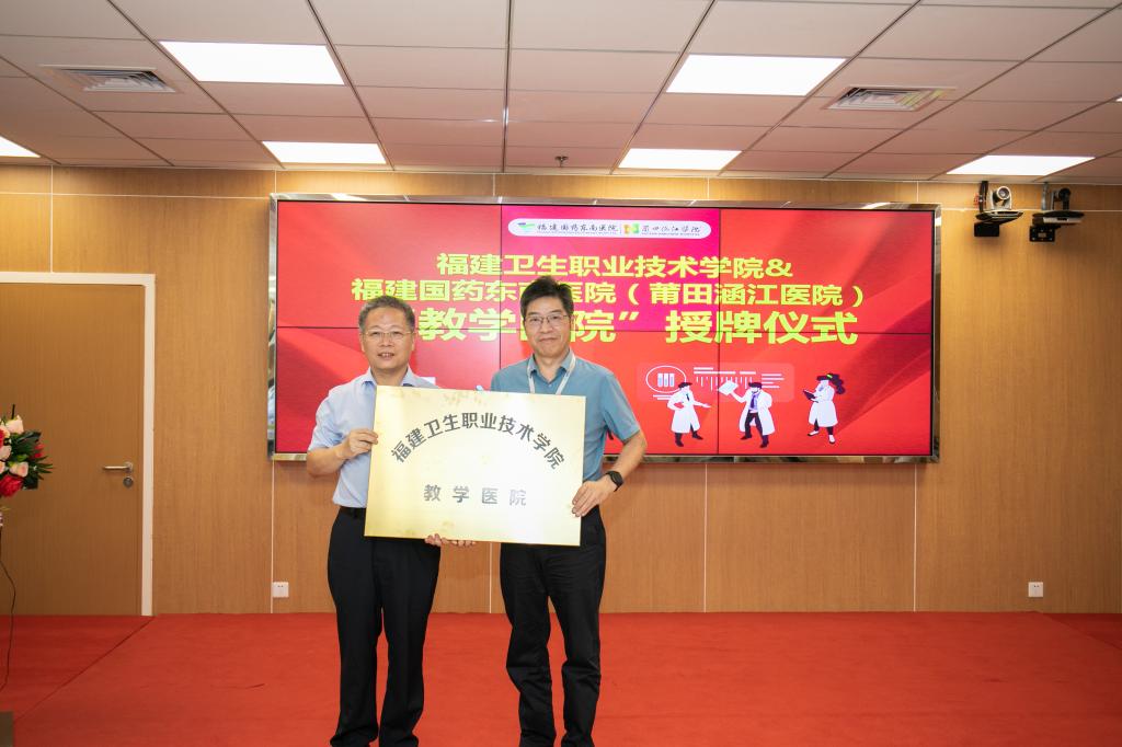 7月12日上午,副校長(zhǎng)陳貞健帶領(lǐng)藥學(xué)院副院長(zhǎng)肖健、醫(yī)學(xué)技術(shù)系黨總支副書記林燕、醫(yī)學(xué)系馬清璇副教授、實(shí)習(xí)實(shí)訓(xùn)中心卞祖安科長(zhǎng)一行5人赴莆田涵江醫(yī)院舉行教學(xué)醫(yī)院授牌儀式。莆田涵江醫(yī)院領(lǐng)導(dǎo)班子、職能科室負(fù)責(zé)人以及臨床教師代表出席儀式。