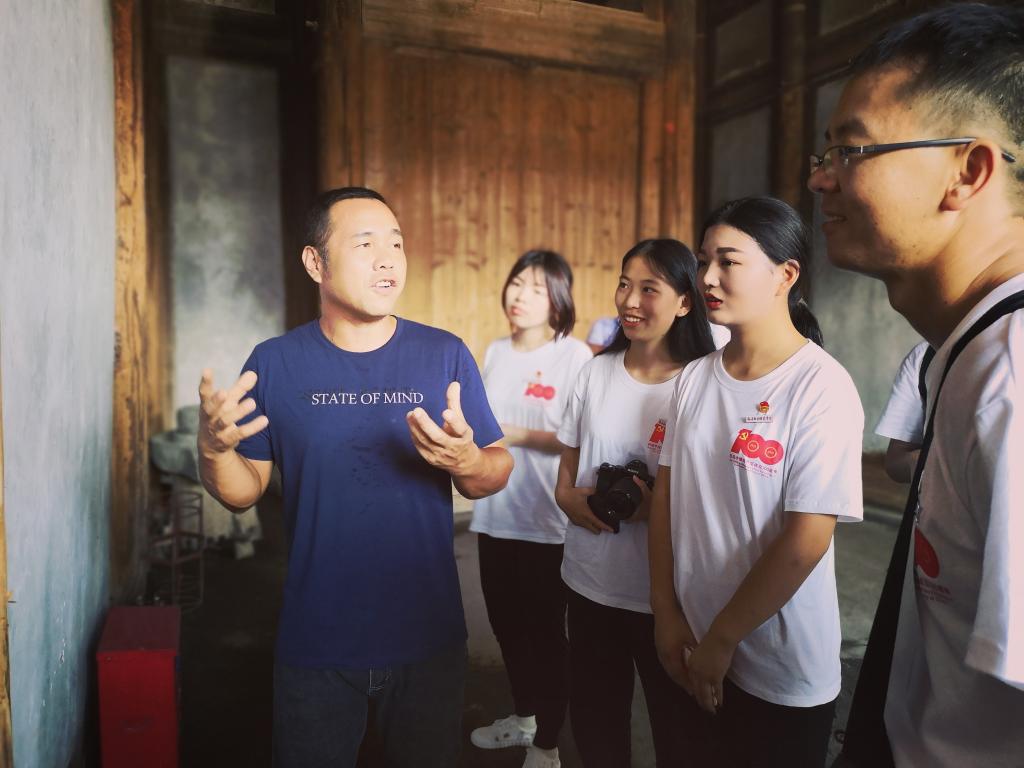 7月4日,初到新坡村臨近中午,烈日炎炎,村黨支部書記江愛盛在村里近四百年的榕樹下為調研師生上了一堂別樣的黨課。他從該榕樹的特點講到新坡村的歷史文化,當前農村面貌的改變。“生在農村,長在農村,我對這塊土地有深厚的感情”,憑借這股對農村執著的熱愛,江愛盛表達了自己二十多年來堅守基層、扎根農村的經歷與感受,他說:習近平總書記講的金句“江山就是人民,人民就是江山,守江山守的就是人民的心”給他感觸很深,扎根基層、服務人民是共產黨人不變的宗旨,他要用實際行動來履行這一宗旨。同時,他也告誡青年學生,要腳踏實地,走進田間地頭,走進農村,走到百姓身邊,擔當時代的責任與使命,在社會實踐和工作崗位中,盡職盡責,為國家的發展,群眾的幸福出量出力,彰顯當代青年的使命與責任。