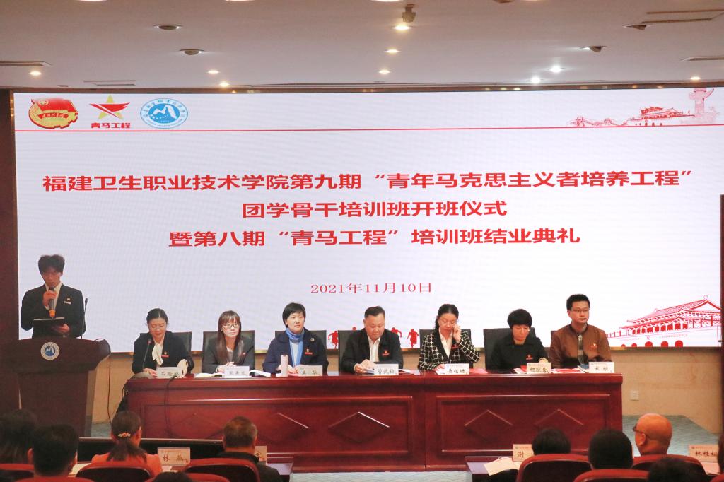 11月10日晚,我校第九期“青年馬克思主義者培養工程”團學骨干培訓班開班儀式暨第八期“青馬工程”培訓班結業典禮在實訓樓四樓會議室順利舉行。黨委書記曾武祈、副校長黃銘珊出席儀式,黨委組織統戰部、黨委宣傳部、學生工作部、馬克思主義學院、團委和各二級院系黨團總支負責人、師生代表160人參加儀式。