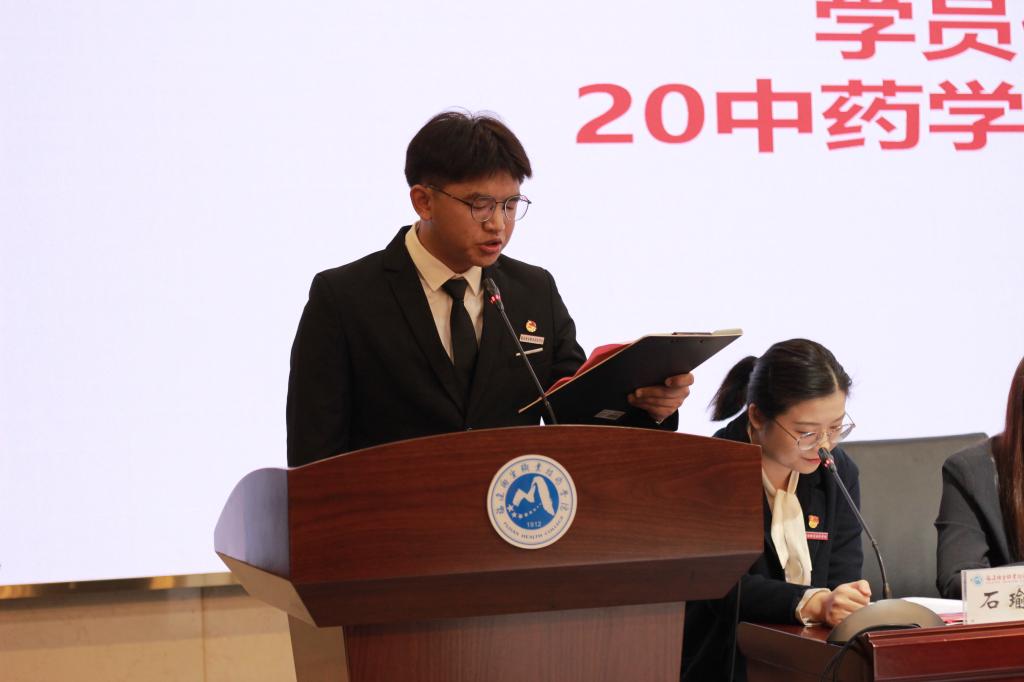 20中藥學302班李忠緒同學作為第九期青馬班學生代表莊嚴承諾:要時刻以青年馬克思主義者的標準來衡量自己,要認真學習和領會黨的創新理論。