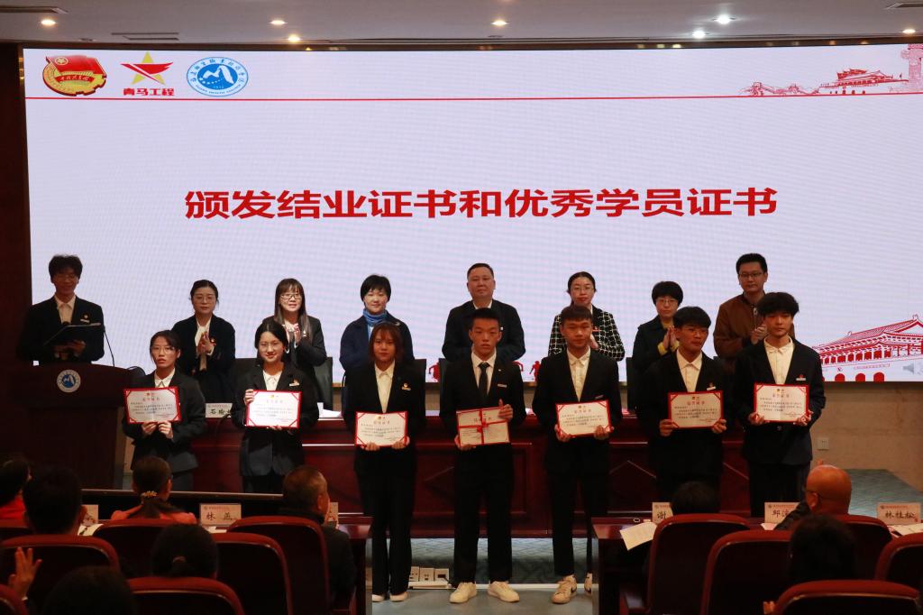 團委副書記石瑜婷宣讀第八期“青馬工程”培訓班結業名單與優秀學員名單,與會領導為第八期學生代表頒發結業證書和優秀學員證書。