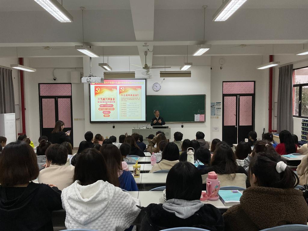 為深入學(xué)習(xí)貫徹黨的十九屆六中全會(huì)精神和福建省第十一次黨代會(huì)精神,12月17日上午,副校長(zhǎng)陳貞健在教學(xué)樓110教室為21級(jí)美容專業(yè)105名師生宣講黨的十九屆六中全會(huì)精神。