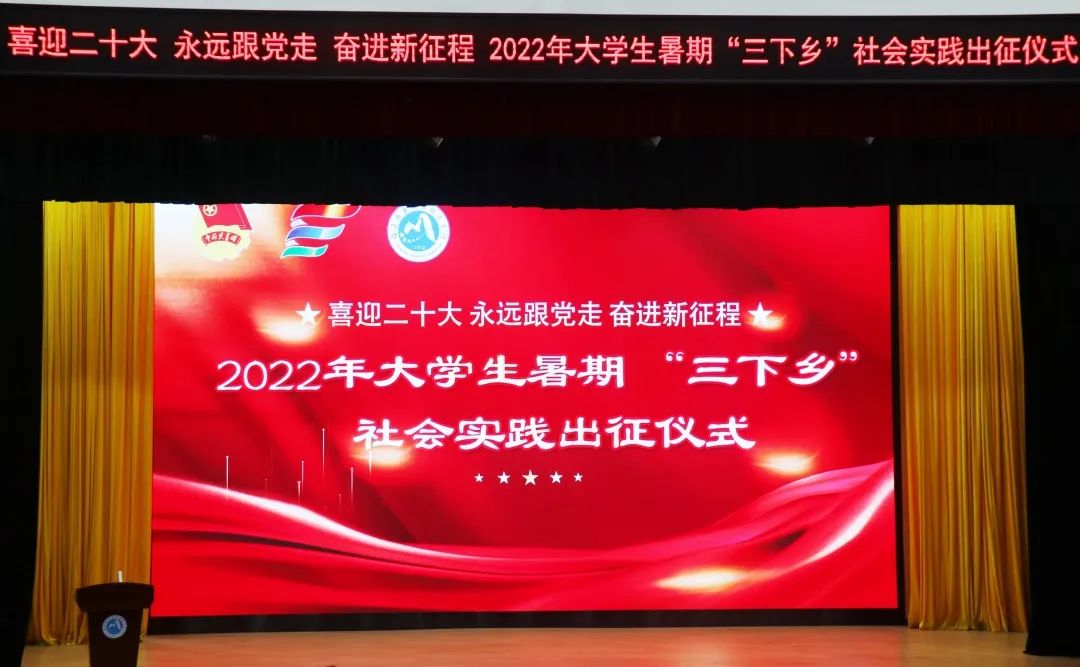 6月27日上午,我校在學術報告廳舉行“喜迎二十大 永遠跟黨走 奮進新征程”2022年大學生暑期“三下鄉”社會實踐出征儀式。副校長黃銘珊,馬克思主義學院、團委、各院系黨總支、團總支負責人,全體21級學生輔導員與各院系社會實踐師生代表共200人參加儀式。