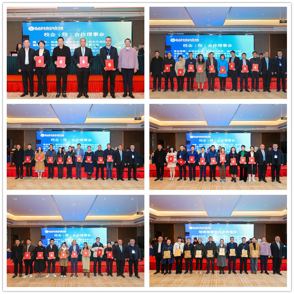 會議組織審議了學校校企(院)合作理事會、福建健康服務職業教育集團成員調整名單及修訂后的章程,并為成員頒發聘書及證書。