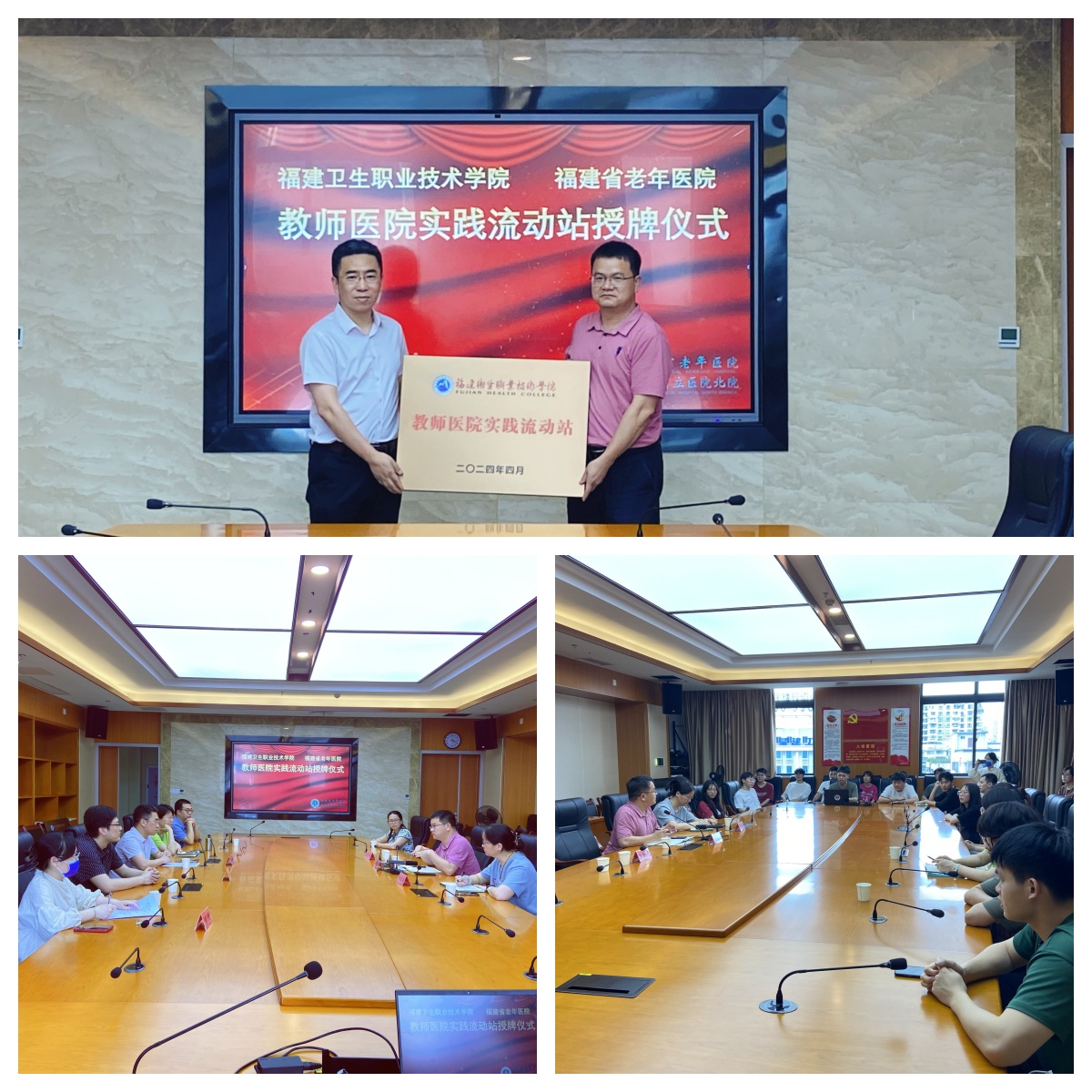 近日,醫學院“教師醫院實踐流動站”授牌儀式分別在福州市中醫院、福建省老年醫院順利舉行。福建省老年醫院副院長黃烽、福州市中醫院院長助理林永忠、醫學院黨總支書記傅衍達,校院相關負責人及教師代表參加授牌儀式。