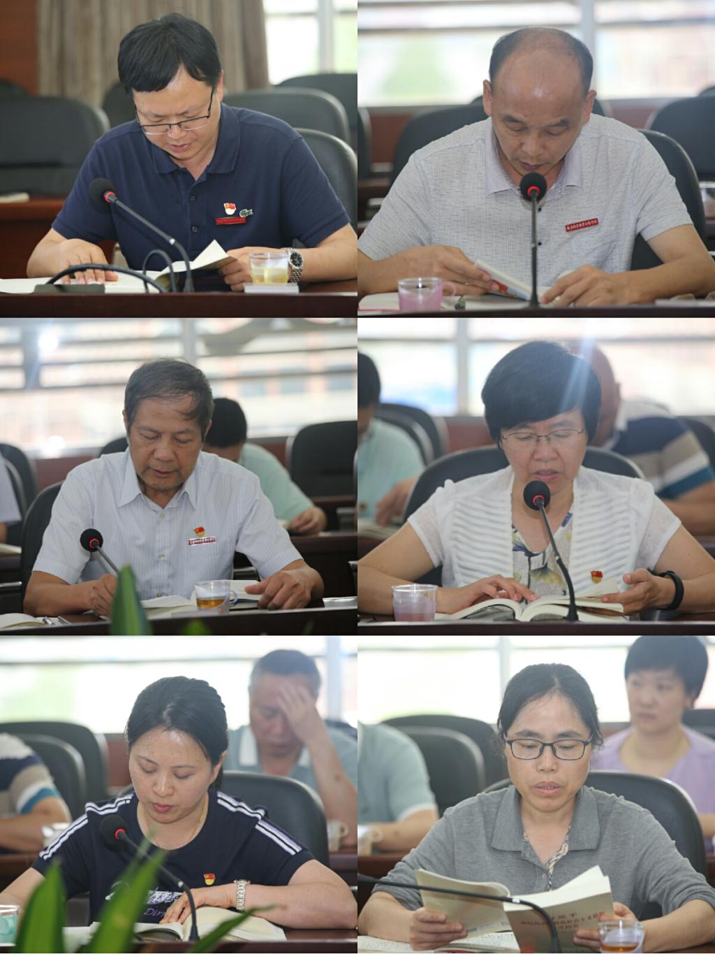 會上,葉海、蘇愛華、洪常青、謝濤、陳俊穎、阮秋容六位同志依次誦讀領學《習近平新時代中國特色社會主義思想學習問答》中部分篇目。