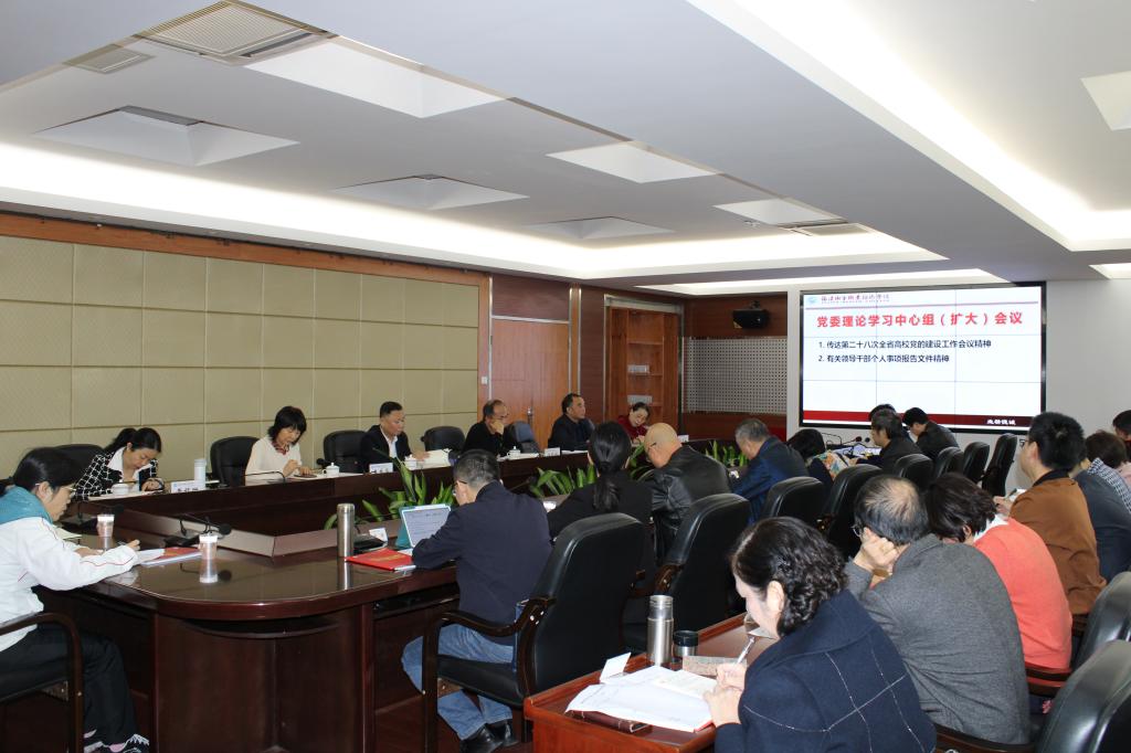 11月10日上午,黨委書記曾武祈主持召開黨委理論學(xué)習(xí)中心組(擴(kuò)大)會議,學(xué)習(xí)傳達(dá)第二十八次全省高校黨的建設(shè)工作會議精神、有關(guān)領(lǐng)導(dǎo)干部個人事項報告文件精神等內(nèi)容。