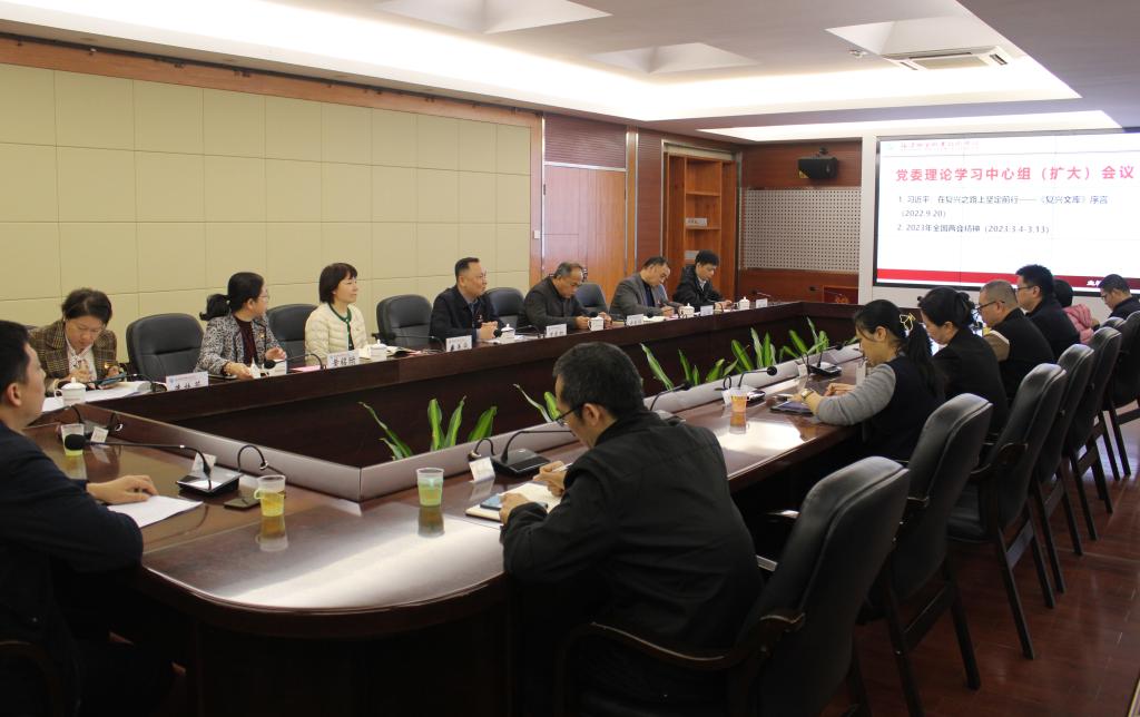 3月15日上午,黨委書記曾武祈主持召開黨委理論學習中心組(擴大)會議,學習習近平總書記為《復興文庫》作的重要序言《在復興之路上堅定前行》精神,專題學習2023年全國兩會精神等內容。