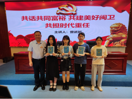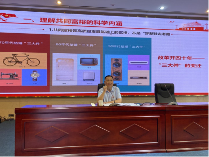,講述了“時代三大件”“閩寧山海情”“三進下黨鄉”等一個個難忘的脫貧故事,詳細介紹習近平總書記在福建任職期間,推動對口幫扶、促進共同富裕重大工程及相關論述,透徹分析了共同富裕的科學內涵、實踐途徑及未來征程。談到我校中職護理專業精準技術扶貧委培班、“十四五”學生工作發展專項規劃及愛生幫扶計劃時,他希望閩衛學子們要潛精研思,做共同富裕思想的堅定學習者;矢志奮斗,做共同富裕的忠實踐行者。
