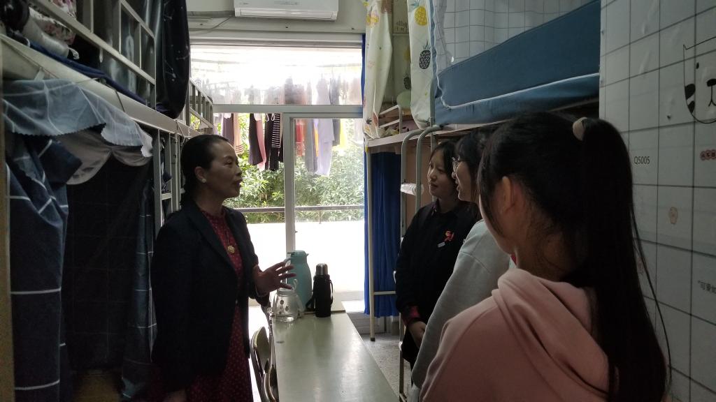 在16104宿舍,鄭翠紅肯定了宿舍內務干凈、整潔,仔細詢問了學生在校的住宿生活和學習情況,建議大家多去圖書館,多讀書、讀好書,拓寬眼界增長見識,并提醒大家入秋氣溫多變要注意防寒保暖,還要加強體育鍛煉,增強身體素質。