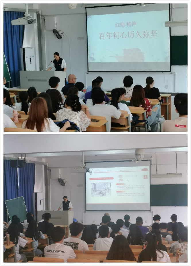 1921—2021,風雨百年路,從石庫門到天安門,從興業路到復興路,百年大黨繼往開來再出發。為重溫“紅船精神”,回顧走過的路,醫學系黨總支副書記陳潔于2021年5月13日在實訓樓304開展“紅船精神,百年初心歷久彌新”專題黨課,第二黨支部全體黨員及入黨積極分子參加了本次的黨課學習。
