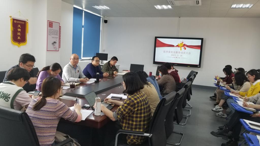 會上,邱滾忠書記傳達了3月17日學院召開的黨史學習教育動員大會的主要精神,對醫(yī)學系黨總支今后的學習教育活動進行了部署,要求全系黨員教師把黨史學習教育作為貫穿今年全年的一項重大政治任務(wù),全面領(lǐng)會習近平總書記重要講話,提高政治站位,堅定理想信念,堅守“立德樹人”教育的初心和使命,將“醫(yī)者仁心”的職業(yè)精神與我系的“尊醫(yī)、重志、學上、行善”的文化有機結(jié)合,立足系部實際,守正創(chuàng)新,以昂揚奮進姿態(tài)不斷提升我系專業(yè)水平。