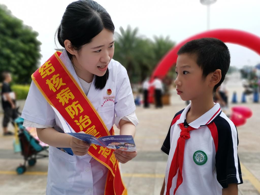 多角度宣傳,多形式互動。志愿服務(wù)隊通過設(shè)立人形立牌、懸掛宣傳條幅、發(fā)放防治結(jié)核病宣傳單、利用小游戲講解結(jié)核病防治知識等方式增強(qiáng)宣傳的趣味性,通過有獎問答贏雨傘、保溫杯、免費(fèi)美甲、免洗手消毒液等禮品的形式,調(diào)動群眾的參與度,提高社區(qū)居民對結(jié)核病知識的關(guān)注度及結(jié)核病防治知識的知曉率。志愿者通過宣教,將關(guān)注居民健康和肺結(jié)核的防治宣傳落實(shí)到實(shí)處,促使人們共同行動起來關(guān)愛生命、共抗結(jié)核,形成健康生活的社會氛圍。