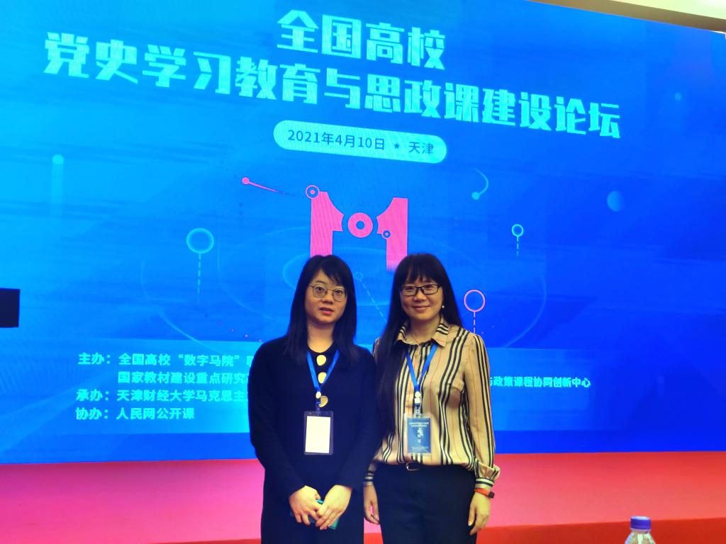 為深入學習貫徹落實習近平總書記在學校思想政治理論課教師座談會和黨史學習教育動員大會上的重要講話精神,推進“數字馬院”建設,2021年4月9日至4月11日,馬克思主義學院院長熊美蘭與吳薇老師赴天津參加全國高校黨史學習教育與思政課建設論壇。
