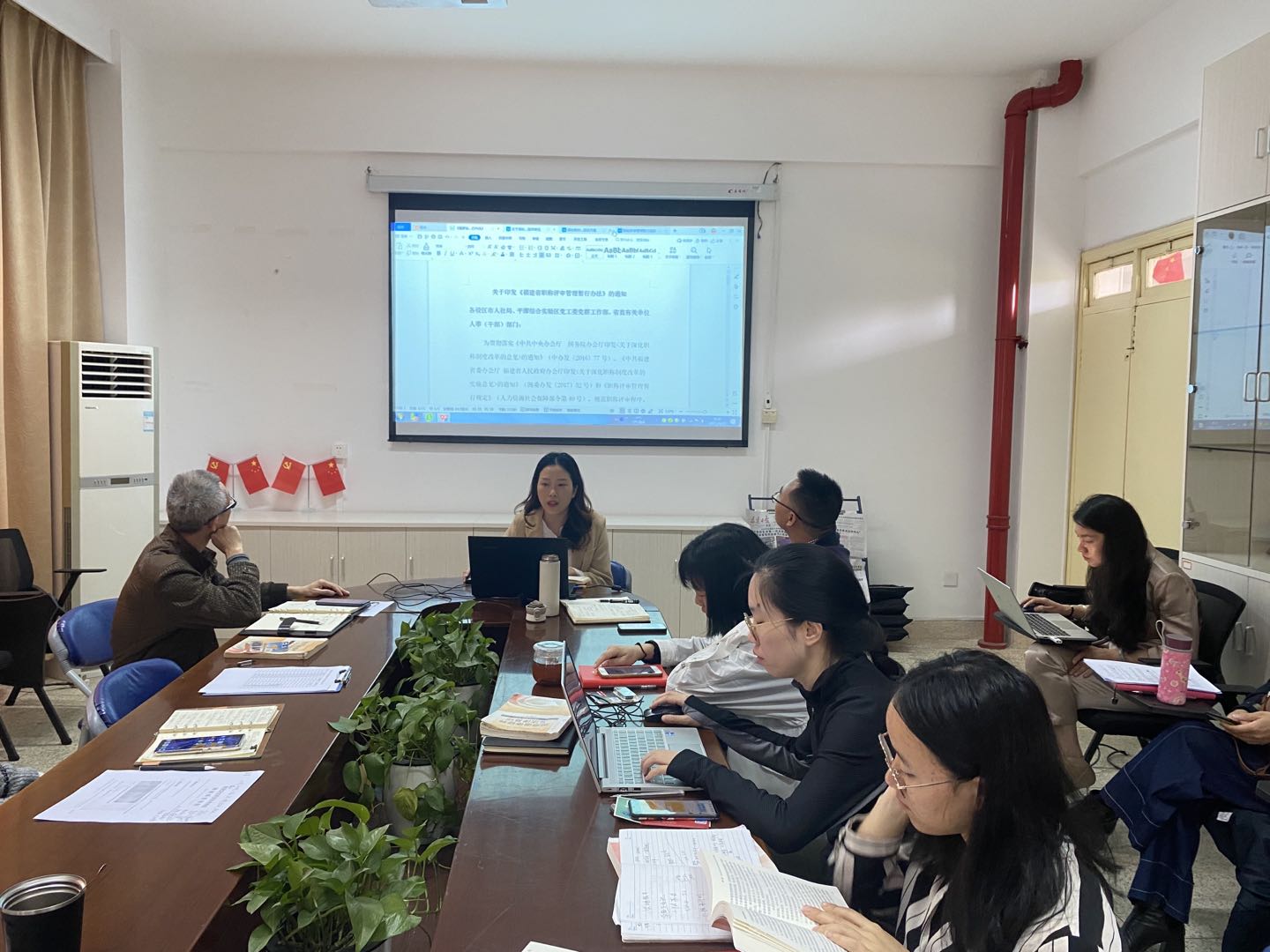 會上,馬院辦公室主任楊盈帶領全體教師逐一解讀相關文件,此次學習不僅加強了馬院全體教師對學校關于職稱評聘相關規章制度的了解,更是進一步強化教師的工作紀律以及責任意識。