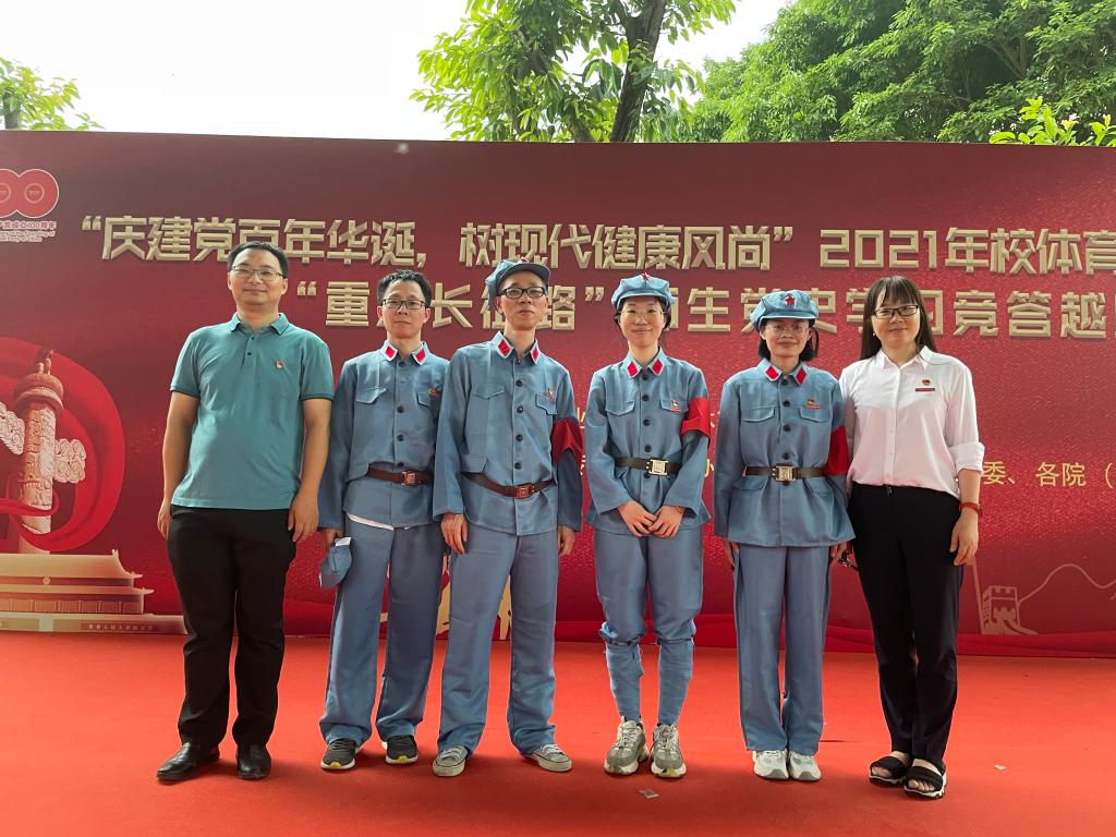在中國共產黨建黨100周年來臨之際,為傳承黨的紅色基因,發揚黨的優良作風,弘揚革命精神,引導廣大師生積極參與體育運動,增強體魄,提高身心素質,2021年5月27日下午,學校舉行“慶建黨百年華誕,樹現代健康風尚”2021年校體育文化節啟動儀式及“重走長征路”之師生黨史學習競答越野賽。馬克思主義學院院長熊美蘭、參賽代表胡濟林老師、顏冰鳳老師、張天文老師、羅蕓老師及相關教師參加了活動。