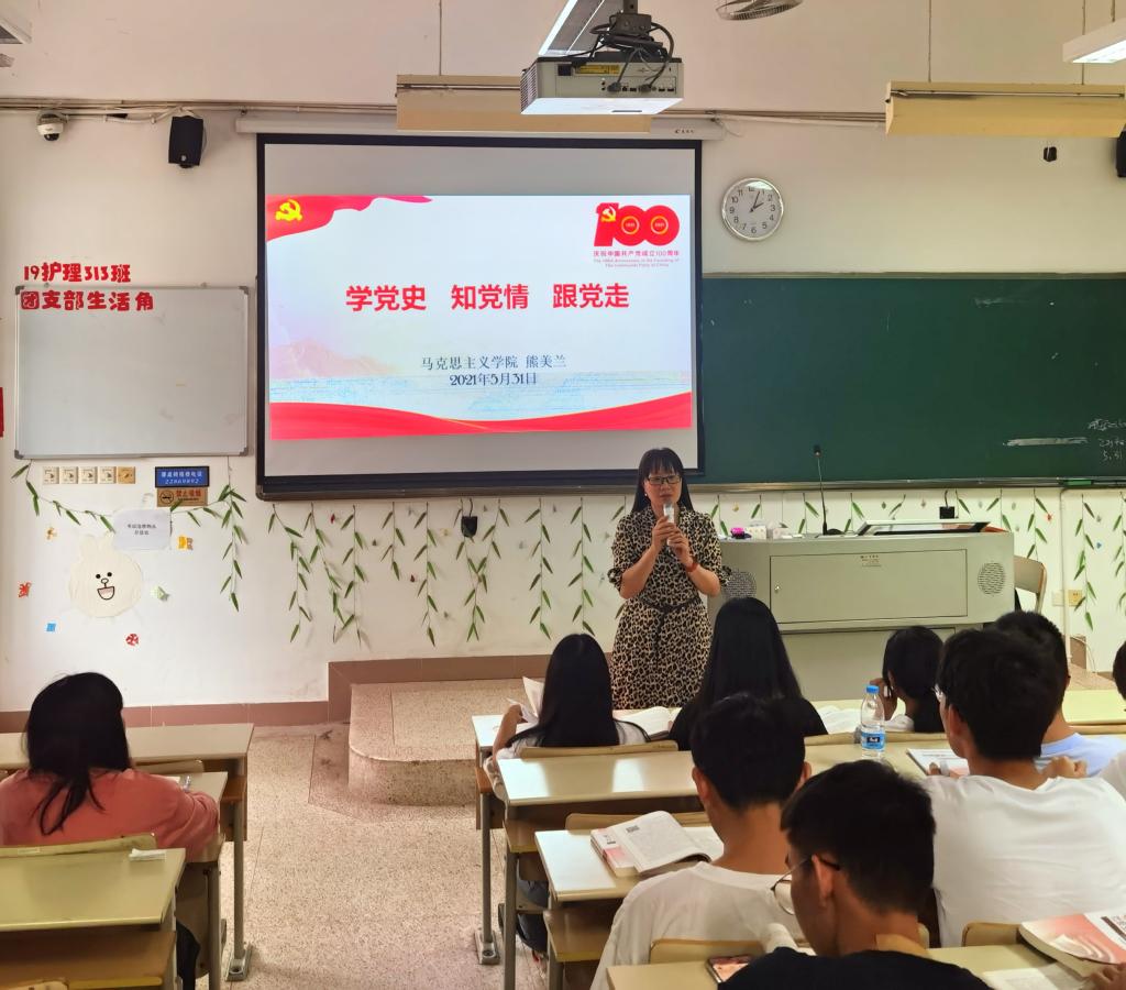 2021年5月31日下午,馬克思主義學(xué)院熊美蘭老師在教學(xué)樓212為20級(jí)臨床醫(yī)學(xué)305、306學(xué)生作題為《學(xué)黨史 知黨情 跟黨走》的黨史主題宣講。