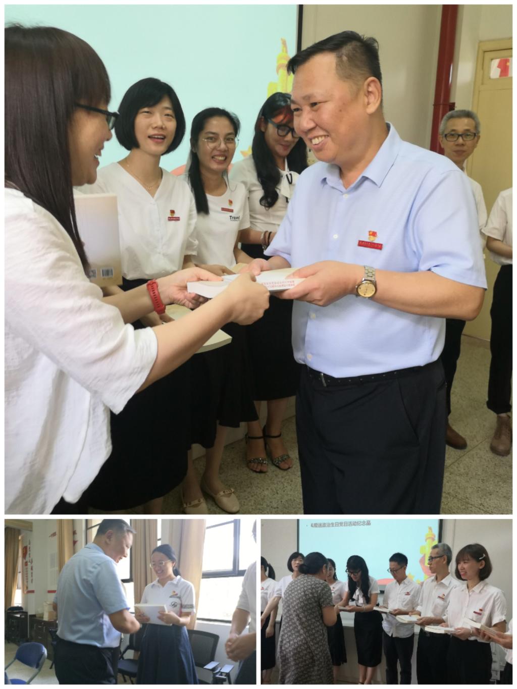 洪流滾滾、百折不撓。在救亡圖存的道路上,信仰是中國共產黨人行穩致遠的壓艙石。百年前,陳望道先生翻譯了《共產黨宣言》,革命青年嘗到了“真理的味道”,自此馬克思主義的信仰便從未改變,共產主義成為了一代代共產黨員的共同選擇。黨支部全體黨員共同誦讀《共產黨宣言》,再嘗真理的味道。中國共產黨是馬克思主義學習型政黨,全體黨員要學習科學理論和先進知識。為形成黨支部良好的學習風氣,曾武祈和馬院名譽院長魏立娜向全體黨員贈書。