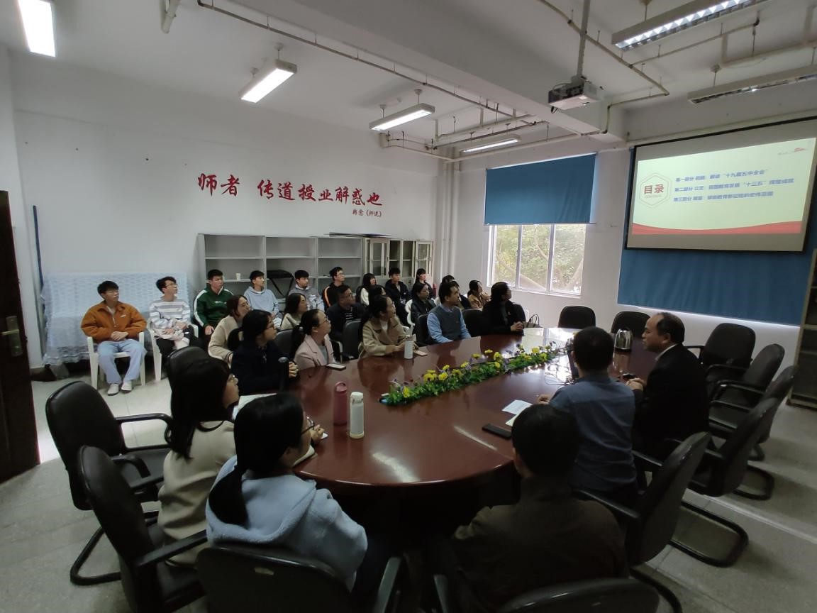報告會結束后,就如何進一步學習宣傳貫徹好黨的十九屆五中全會精神,許能鋒與教師、學生代表進行座談交流,對大家關心的問題一一作了解答闡釋。