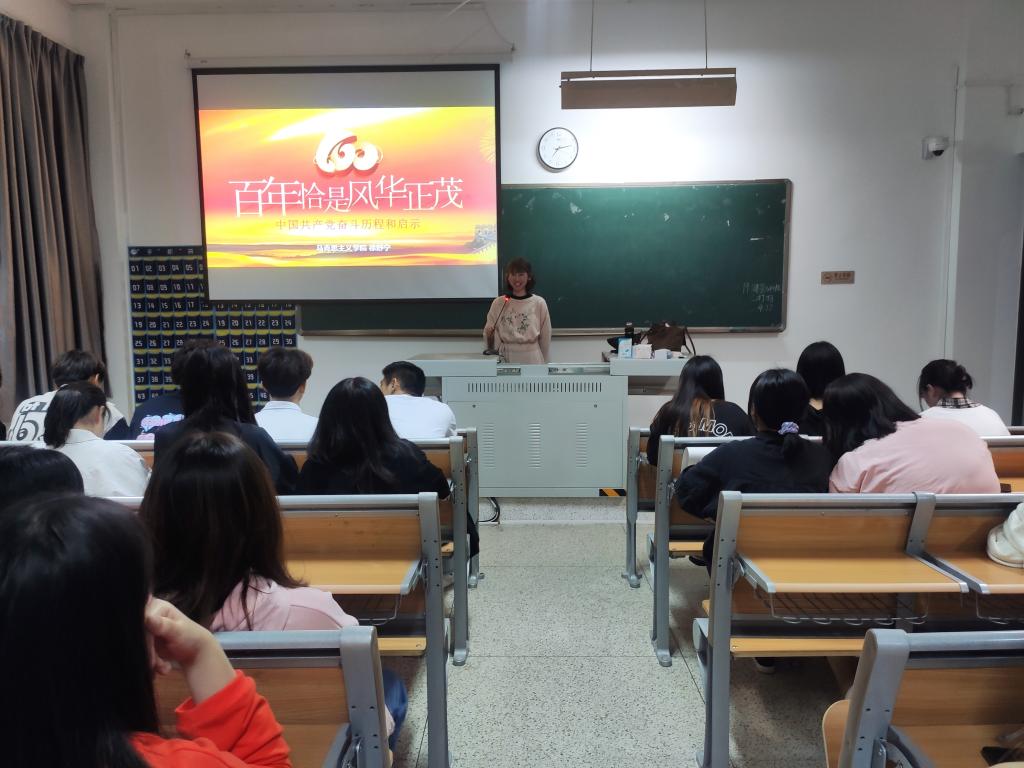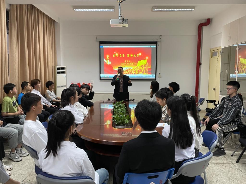 黨史學習教育基礎在學習、目的在教育,將黨史學習教育融于立德樹人全過程。2021年4月,馬克思主義學院教師對指導的社團成員持續開展“百年黨史 精神永存”系列宣講活動,讓同學們走進歷史深處,了解百年大黨的夢想與追求、情懷與擔當。