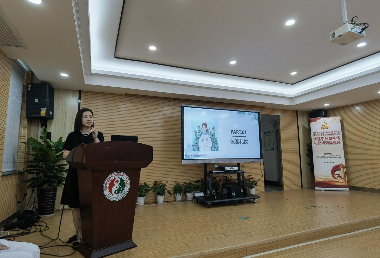 為貫徹落實黨的二十大精神,深入開展學習貫徹習近平新時代中國特色社會主義思想主題教育,增強黨支部的執行力和凝聚力,提升黨建工作的生命力和創造力,持續推進支部建設與專業發展深度融合。2023年5月19日,護理學院第一黨支部開展“黨建引領強隊伍 禮儀培訓優服務”主題教育黨日活動。護理學院第一黨支部黨員教師劉菲菲發揮專業特長,為福建中醫藥大學附屬第二人民醫院全體護士開展護理禮儀與溝通培訓。