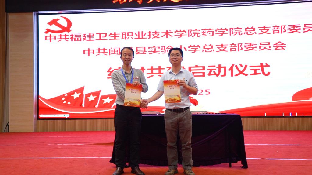 為深入開展學習貫徹習近平新時代中國特色社會主義思想主題教育,全面貫徹落實新時代黨的建設總要求,充分發揮各級校園人才優勢和示范帶動作用,進一步助推校際黨建業務雙融合雙促進,2023年5月25日,我校藥學院黨總支與閩侯縣實驗小學黨總支開展結對共建啟動儀式,活動在閩侯縣實驗小學大成樓三樓舉行。我校副校長黃銘珊、閩侯縣實驗小學黨總支書記張進勇及班子成員、藥學院黨總支全體黨務干部出席本次活動。