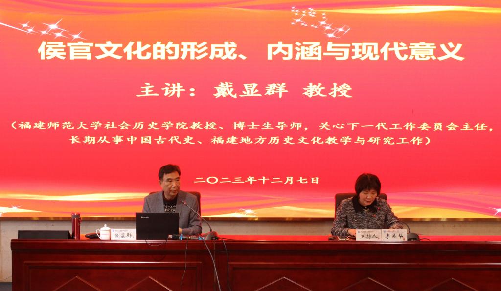 為更好增強歷史自覺、堅定文化自信,12月7日下午,校黨委副書記李美華主持召開黨委理論學習中心組(擴大)會議,邀請福建師范大學社會歷史學院戴顯群教授為我們帶來《侯官文化的形成、內涵與現代意義》的專題講座。