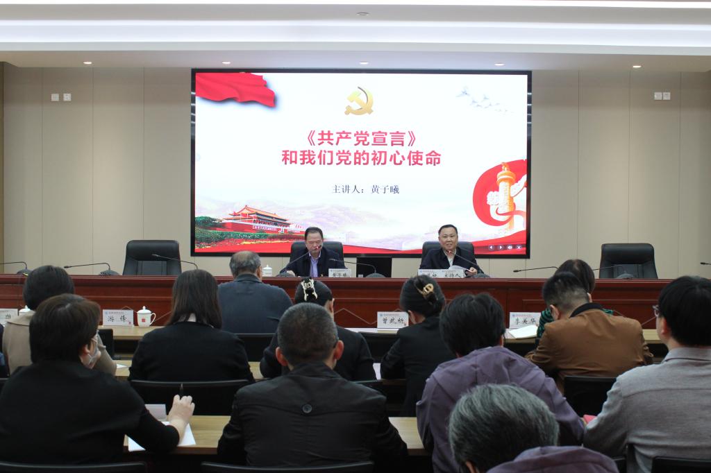 黃子曦從《共產黨宣言》誕生的歷史背景及歷史意義、《共產黨宣言》的重大理論貢獻、《共產黨宣言》與我們黨的初心使命等三個方面闡述了《共產黨宣言》這第一部較為完整系統科學地闡述社會主義基本理論的偉大著作。本次專題講座內涵豐富、邏輯清晰、重點突出、剖析深刻。