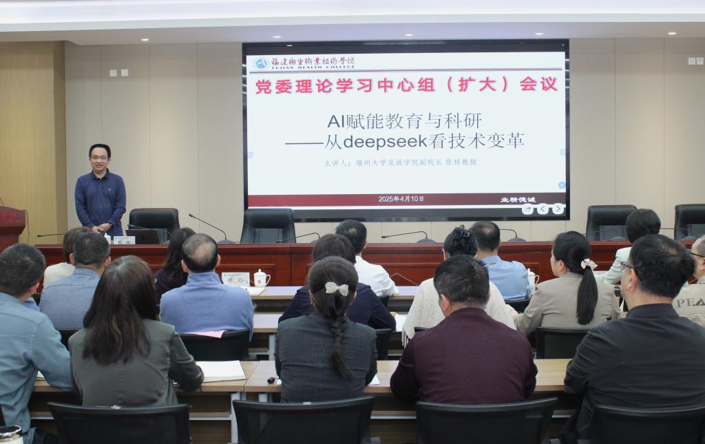 為助力黨員干部精準把握時代發展的脈搏,緊跟技術進步的前沿,4月10日,我校召開黨委理論學習中心組(擴大)會議,邀請福州大學至誠學院副院長張棟教授作《AI賦能教育與科研——從DeepSeek看技術變革》專題講座。校領導、全體中層正職(含主持工作)、教師代表共100余人參會,會議由校黨委副書記李美華主持。