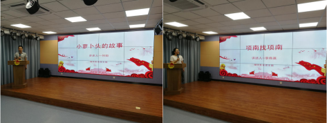 溫故才能知新,行穩方能致遠。院直機關黨總支舉辦黨史故事分享會。活動現場,分享者圍繞黨的百年崢嶸歲月,講述了從小英雄“小蘿卜頭”的故事到楊榮顯一家八子參軍,從抗日機智勇敢的小英雄海娃到誠信為公的紅色金融家高捷成,從手舍小家為大家的革命戰士項南到嚴明法紀下的“揮淚斬馬謖”黃克功逼婚殺人案的故事,帶領臺下聽眾們共同回顧了黨砥礪前行、奮發圖強的光輝歷程。