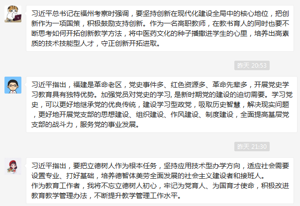 隨后,支部黨員發(fā)表了學(xué)習(xí)心得,紛紛表示要牢記囑托、奮勇前進,把習(xí)近平總書記的親切關(guān)懷和重要講話精神轉(zhuǎn)化為做好各項工作的強大動力,在服務(wù)和發(fā)展學(xué)院的格局上展現(xiàn)更大作為,為奮力譜寫全面建設(shè)社會主義現(xiàn)代化國家福建篇章作出更大貢獻。