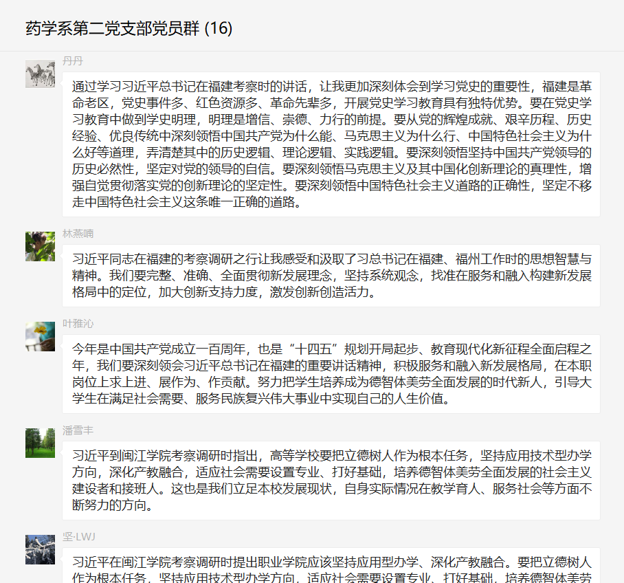 支部黨員在完成自學后踴躍發言,紛紛表示要充分利用福建作為革命老區的獨特優勢加強黨史學習,深刻領悟堅持中國共產黨領導的歷史必然性,真正達到“明理、增信、崇德、力行”成效。同時,通過本次學習進一步明確了職業教育未來的發展方向,增強了責任感與緊迫感,今后將凝心聚力、抓住機遇、只爭朝夕,積極服務和融入新發展格局,在本職崗位上求上進、展作為、作貢獻!