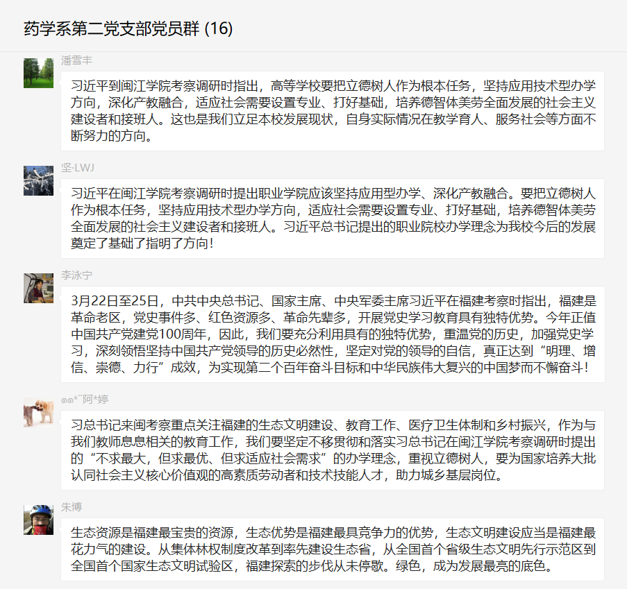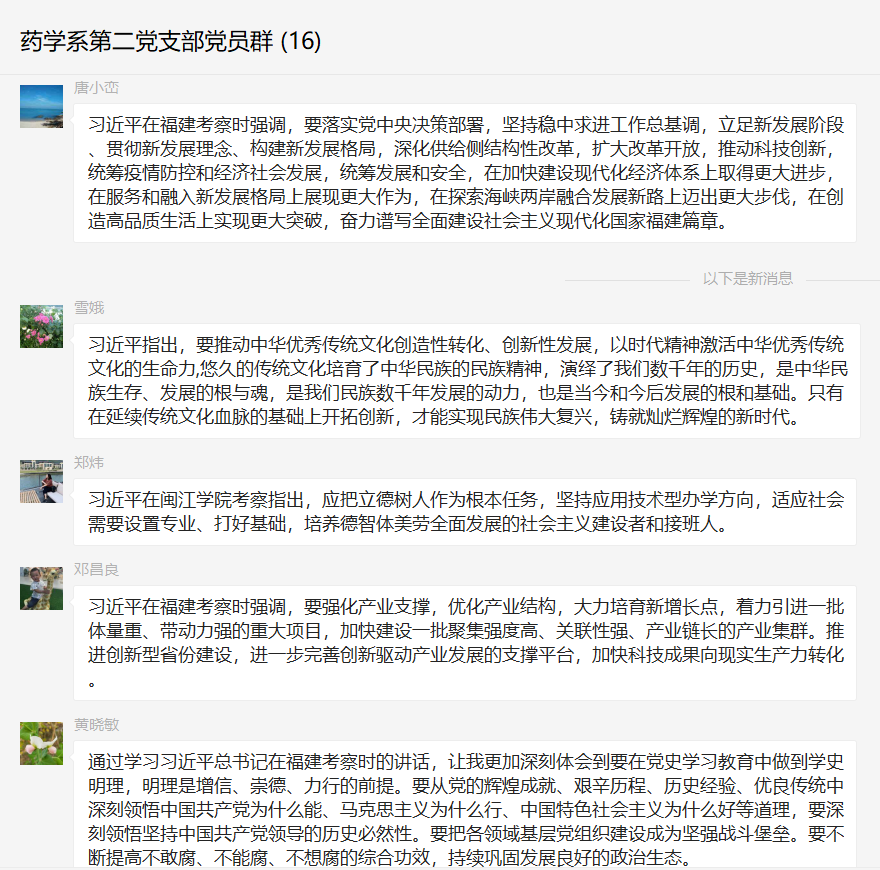 為學習貫徹習近平總書記在福建考察調研時的重要講話精神,藥學院第二黨支部于2021年3月30日開展線上專題學習。本次專題學習由支部書記劉丹丹同志主持。