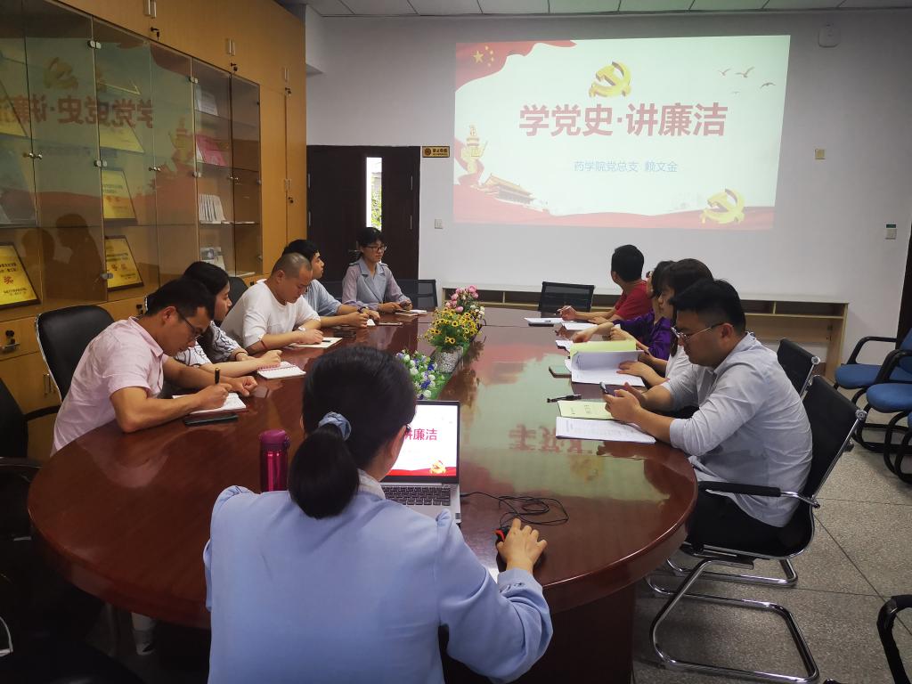 5月21日,藥學院學生第一、第二、第三黨支部召開“學黨史、講廉潔”專題黨課,藥學院黨總支副書記賴文金授課。