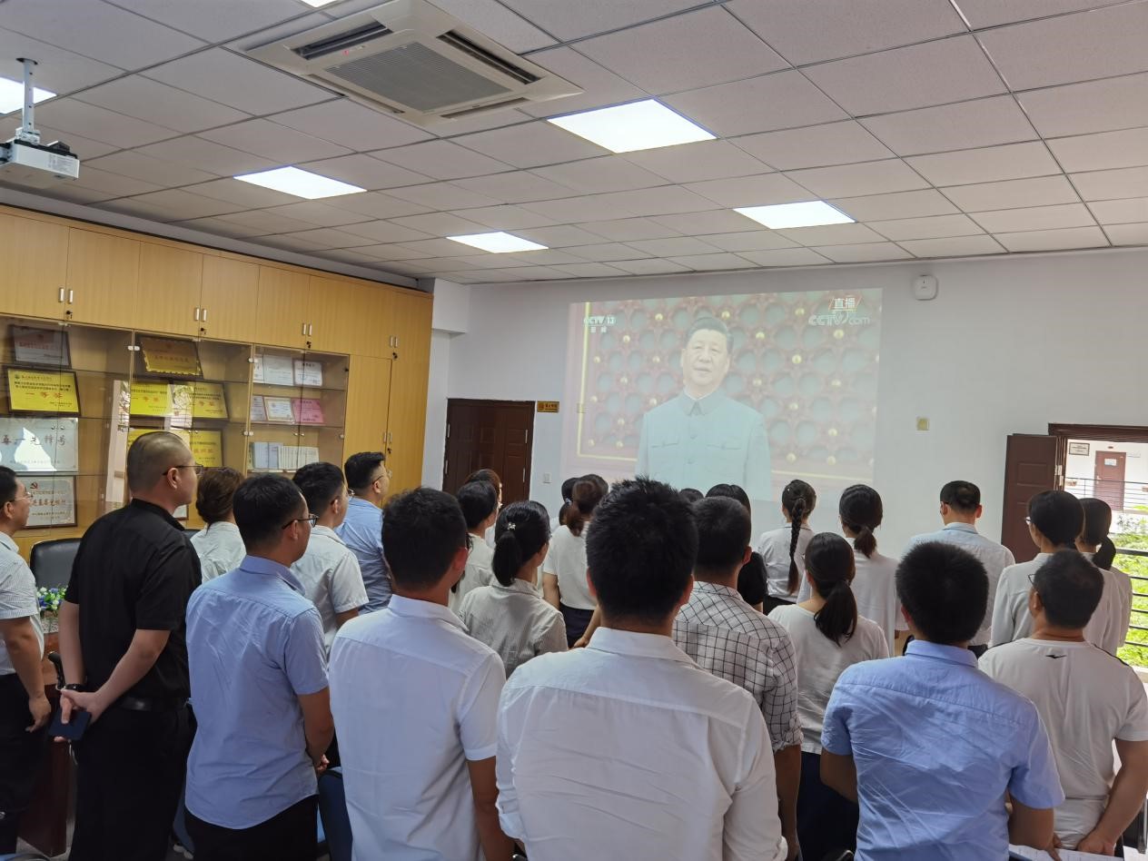 隨后,黨員在會議室一起觀看了“慶祝中國共產黨成立一百周年大會”直播,在播放國歌時,全體黨員自覺起立共唱國歌。