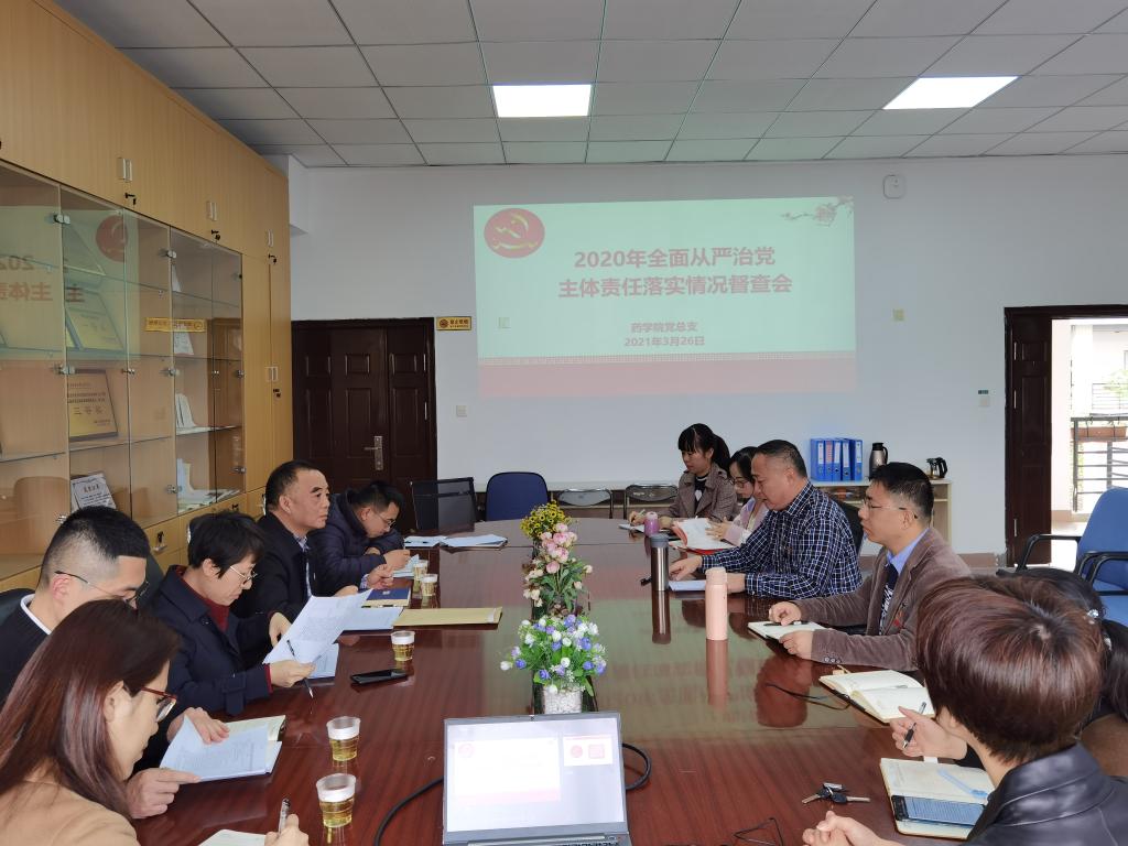 2021年3月26日,藥學院黨總支在207會議室召開2020年全面從嚴治黨主體責任落實情況督查會議,學院紀委書記游鋒、黨委宣傳部部長柯瓊鶯、黨政辦公室副主任陳盛蘭、黨委組織統(tǒng)戰(zhàn)部副部長謝宗穎、人事處江山、紀委辦公室金城等一行到場巡查,藥學院黨政領(lǐng)導班子成員、總支支委、各支部書記參加本次會議。