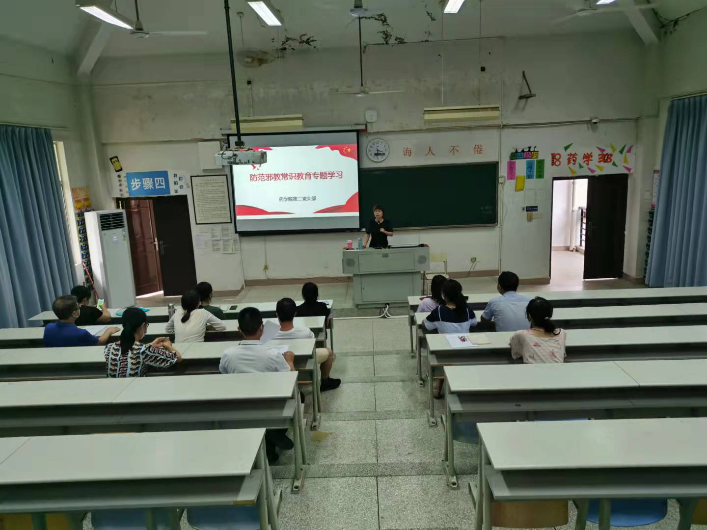 為進一步弘揚科學精神,提高支部黨員對邪教組織的警惕性、鑒別和防范能力,藥學院第二黨支部于2021年9月30日開展防范邪教常識教育專題學習。本次專題學習由支部書記劉丹丹主持。