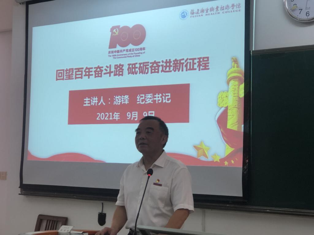 9月9日,學(xué)校紀委書記游鋒以“回望百年奮斗路,砥礪奮進新征程”為主題,為藥學(xué)院2020級藥學(xué)301、302班學(xué)生講授了一堂意義深遠的“開學(xué)第一課”。