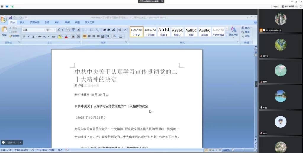 為進(jìn)一步準(zhǔn)確領(lǐng)會(huì)把握黨的二十大精神,切實(shí)把思想和行動(dòng)統(tǒng)一到貫徹落實(shí)黨的二十大精神上來,藥學(xué)院第一黨支部線上開展黨的二十大精神專題學(xué)習(xí)。