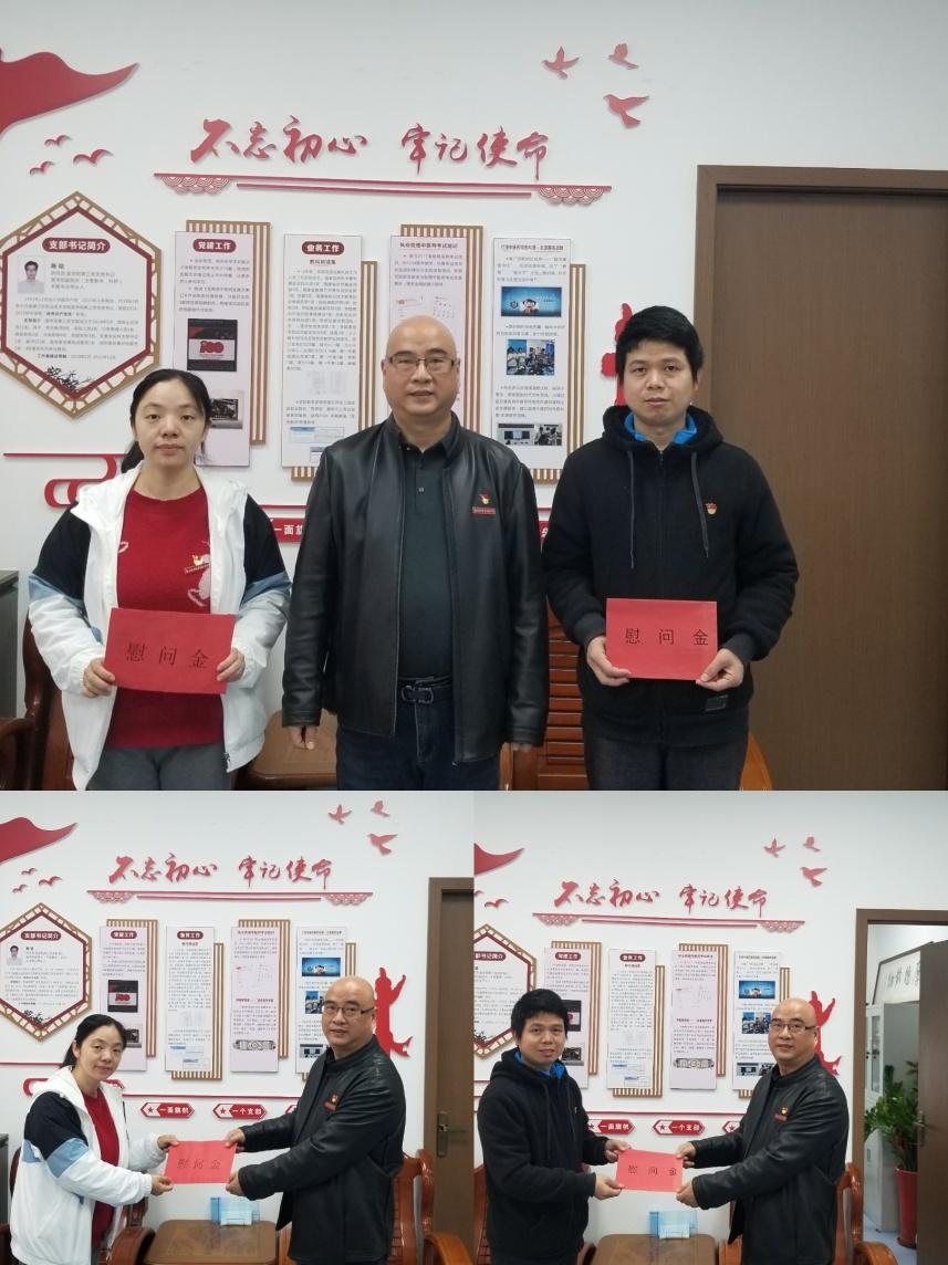 黨總支書記邱滾忠詳細(xì)了解他們工作、生活等情況,傾聽他們所盼、所想、所需的心聲,鼓勵他們積極面對困難,有問題及時向黨組織反應(yīng),黨組織也會竭盡全力給予幫助和支持,并將慰問金逐一送到他們的手上,以此向他們表達(dá)節(jié)日的祝福和問候。