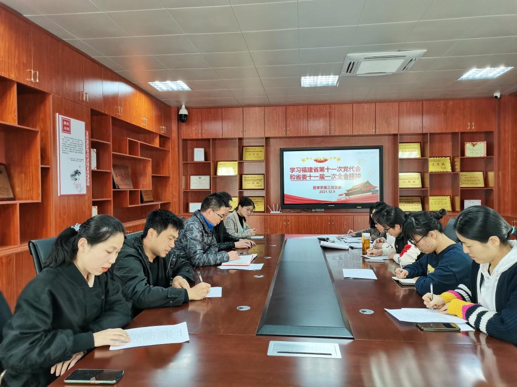 2021年12月9日中午,醫學系第三黨支部在實訓樓311開展“福建省第十一次黨代會和省委十一屆一次全會精神”專題學習活動。本次活動由支部書記陳銘主持。